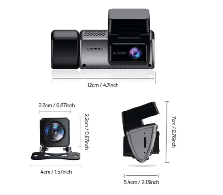 Ürün Genel Bakış 3 Kanallı (Üç Lensli) Araç İçi & Dışı Kayıt Sistemi Ultra HD…