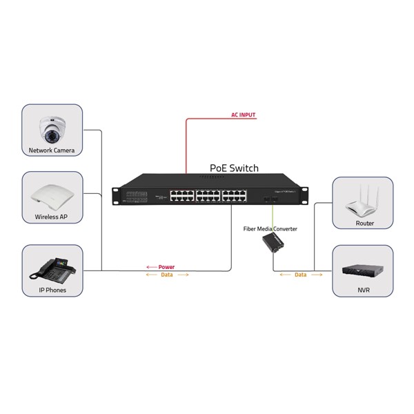ODS 24port PoE 300w 2-SFP Gigabiit Yönetilemez Switch 08ODS-24GP2S-300